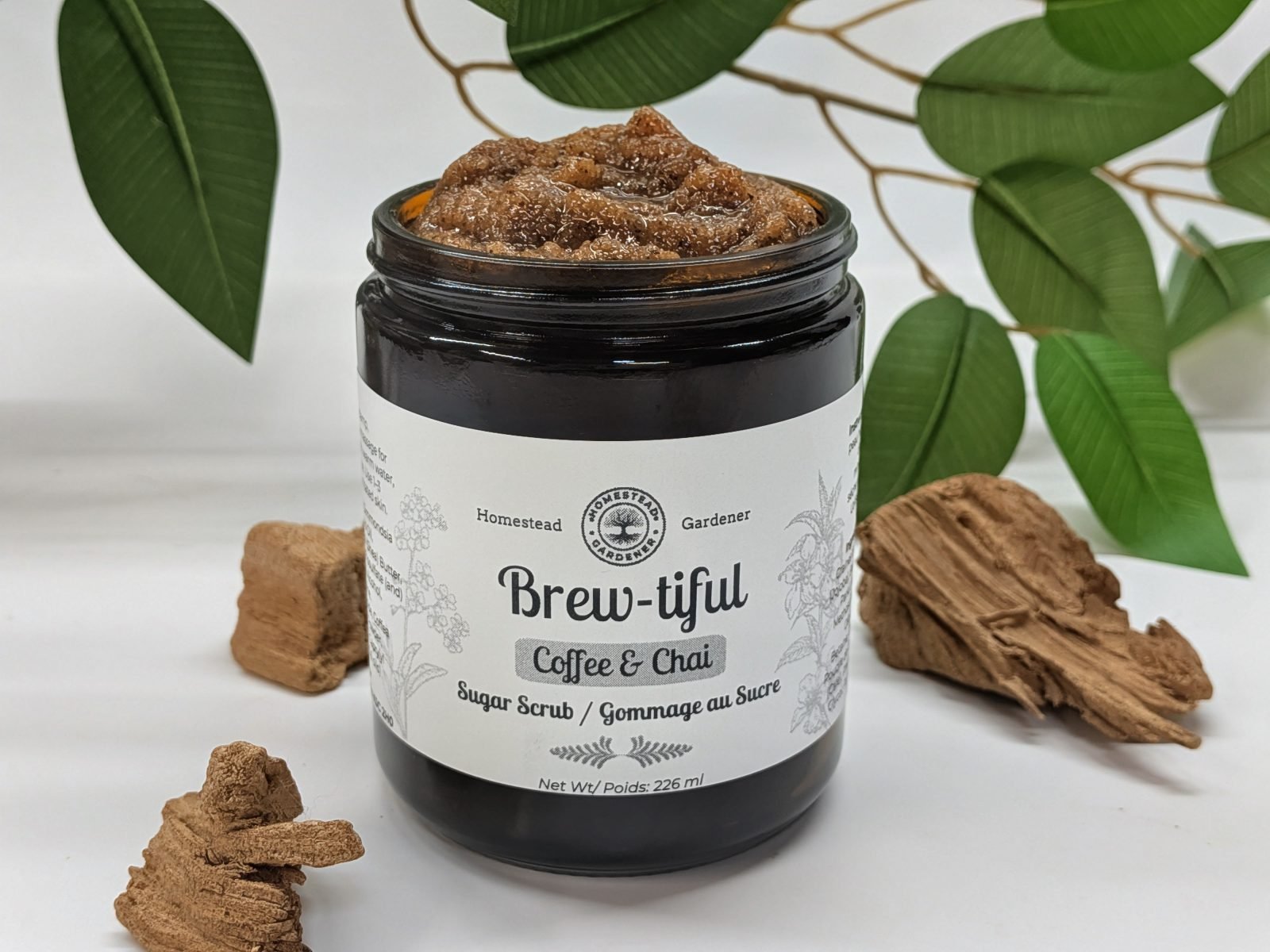 The coffee grounds in this scrub tightens and tones the skin, reduces puffiness, and stimulates circulation, which can enhance skin appearance and promote a healthy glow.